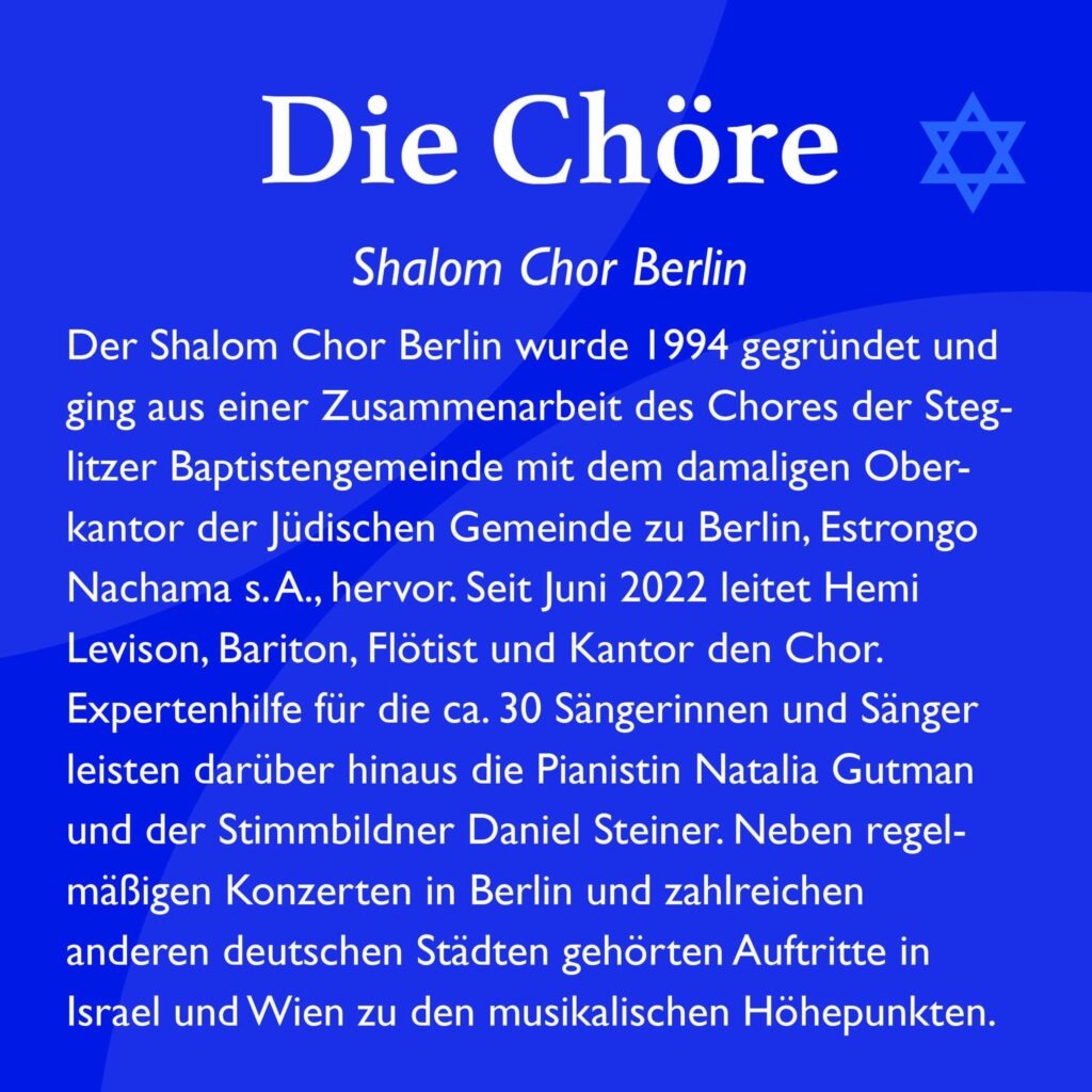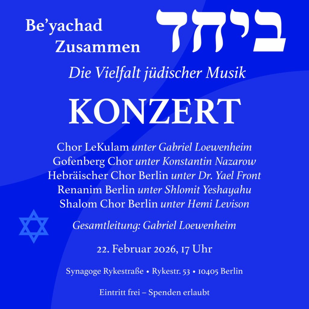 Unser gemeinsames Projekt am 22. Februar 2026 geht in die Zielgerade. Für das große Konzert in der Synagoge Rykestraße sind alle weiteren Chöre zu einer gemeinsamen Probe am 17. Februar bei uns zu Gast in der Rothenburgstraße. Wir werden die Lieder zusammen proben, die wir gemeinsam singen.